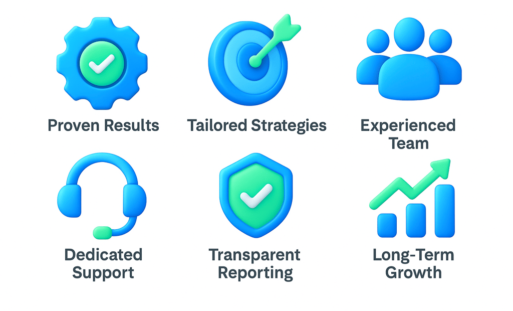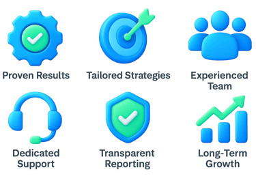 We focus on transparency, personalization, and measurable growth. Every strategy we create is tailored for your business — not copied from templates. You’ll always know what we’re doing and how it’s helping you grow.